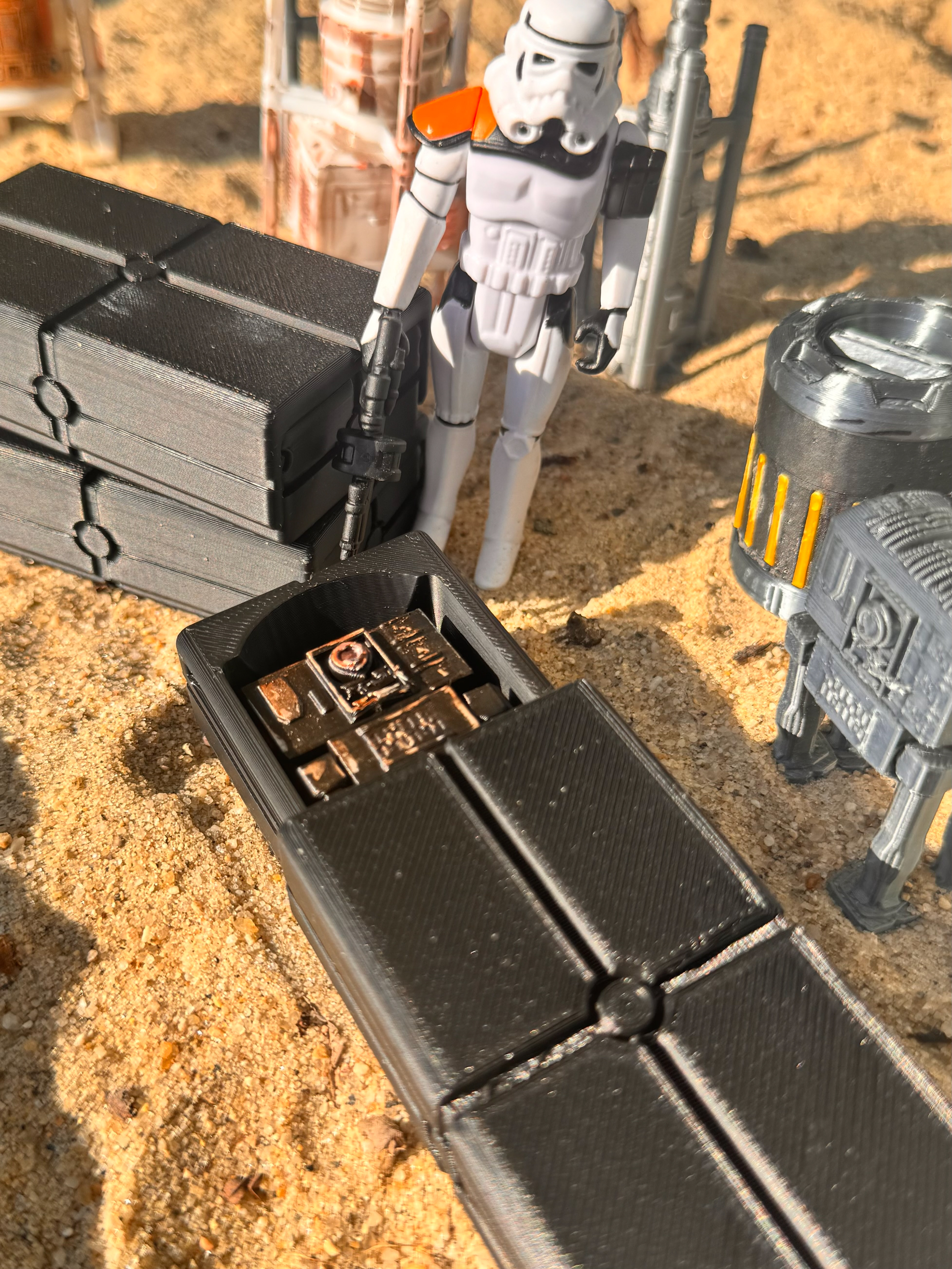 The imperial recon droids are 3.75" scale Star Wars inspired Kenner action figure accessories. The imperial crate contains each imperial recon droid and they can be deployed to watch and monitor areas.
