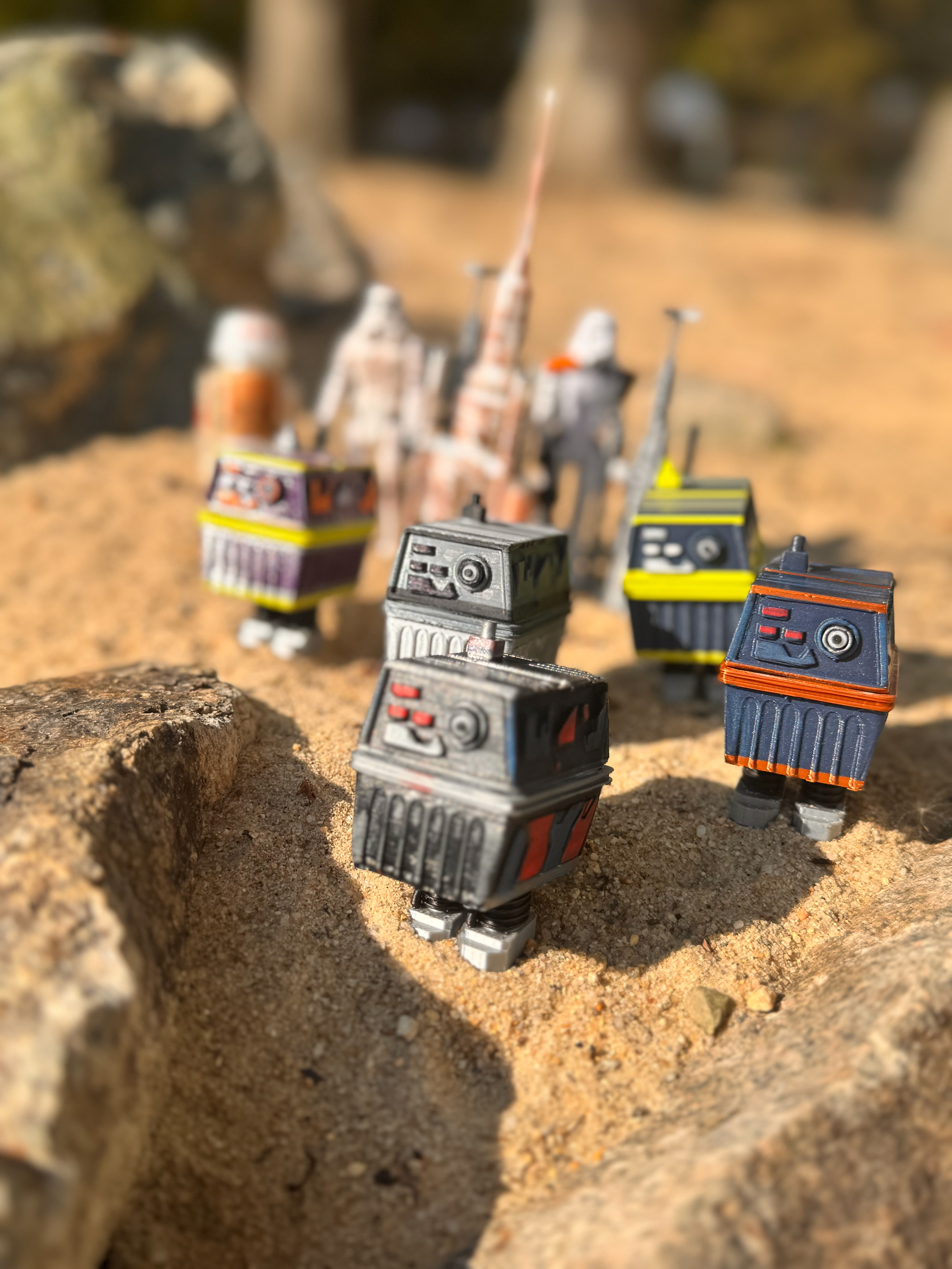 These are 3.75" Star Wars inspired kenner action figures. the legs are fully articulated like the original figures but the size and detailing on these custom figures is more in line with modern toys. I love the blend of the old and new and how these never got to see the screen perhaps.