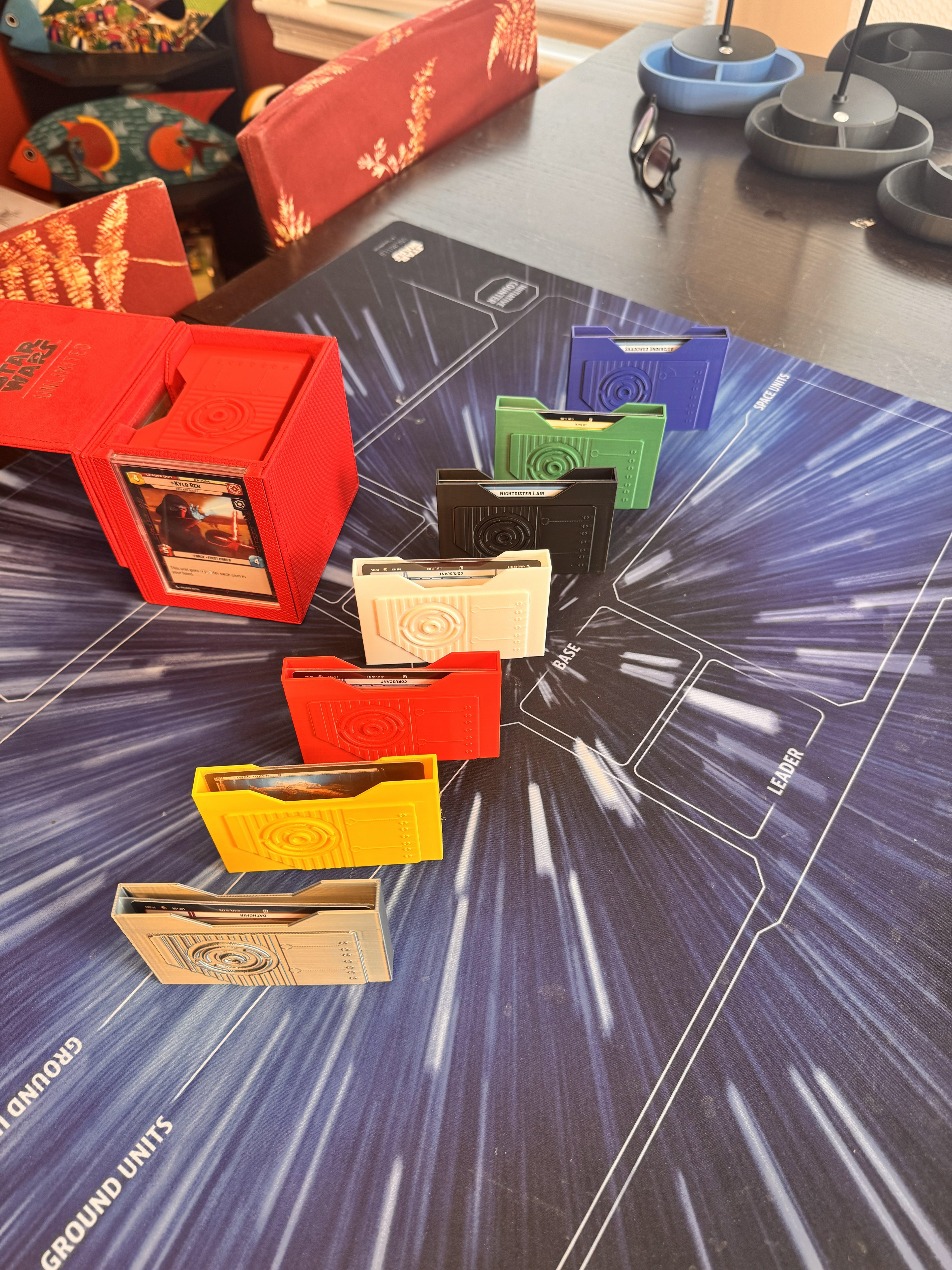 These are used for your extra 10 cards and stored in the Star Wars Unlimited Deck pod holders. they are designed to fit sleeved cards and there is a different color for each aspect of the game.